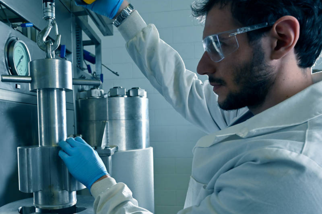Our technology consists in applying high pressure directly to the CO2 (process fluid) to induce the critical state, obtaining, in this intermediate phase between liquid and gas state (pressure > 72 atm. and temperature > 32°C), an absolutely non-toxic solvent.